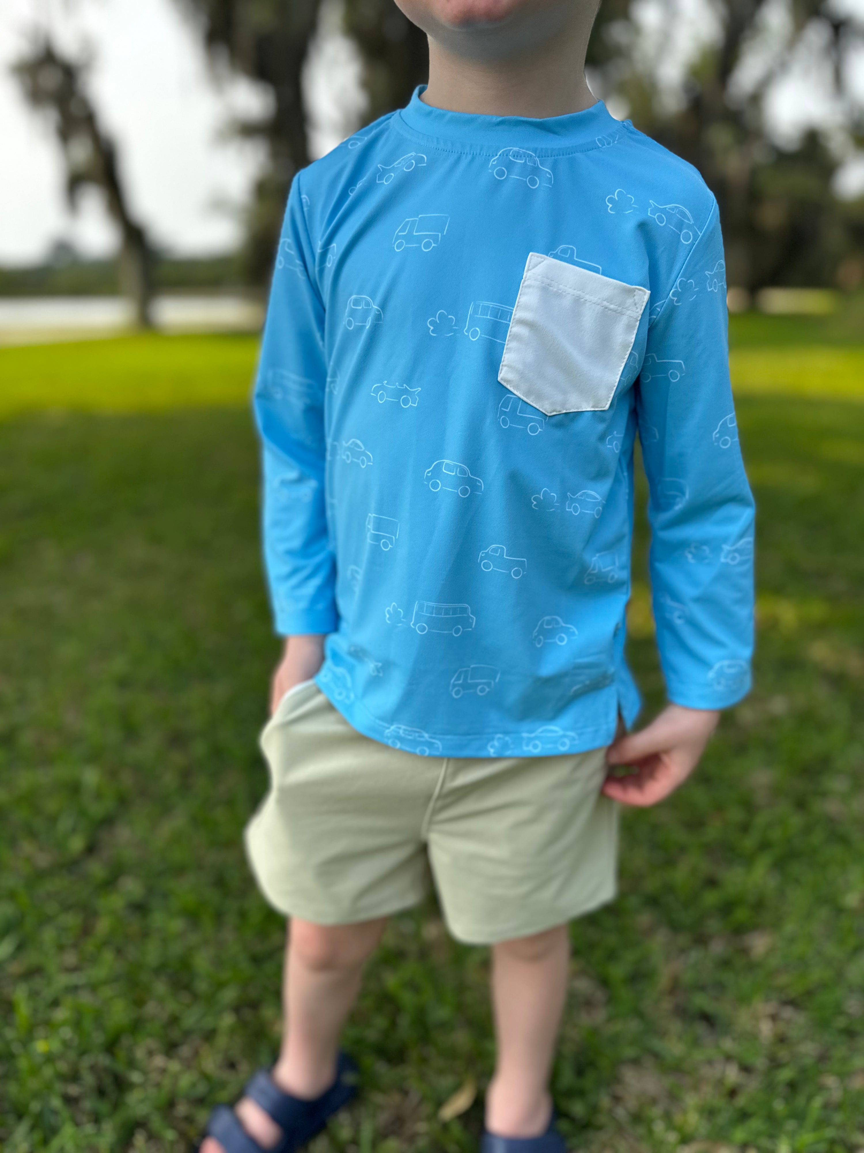 Our boys’ long sleeve UPF 50+ tee is a must-have for sunny days. Designed with quick-drying fabric and built-in sun protection, it blocks 98% of harmful UV rays. Your boys will love this fan favorite car print!